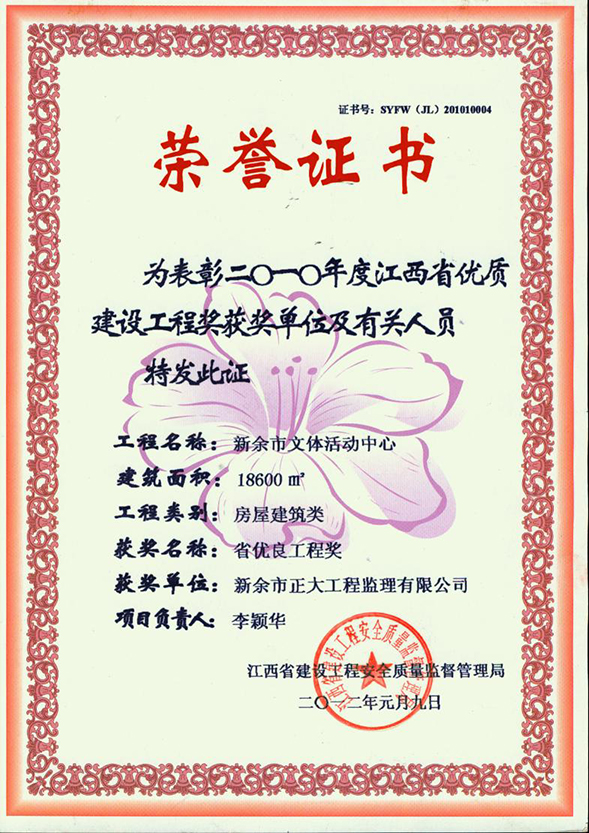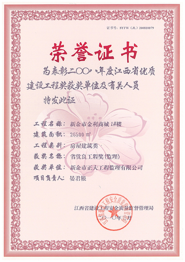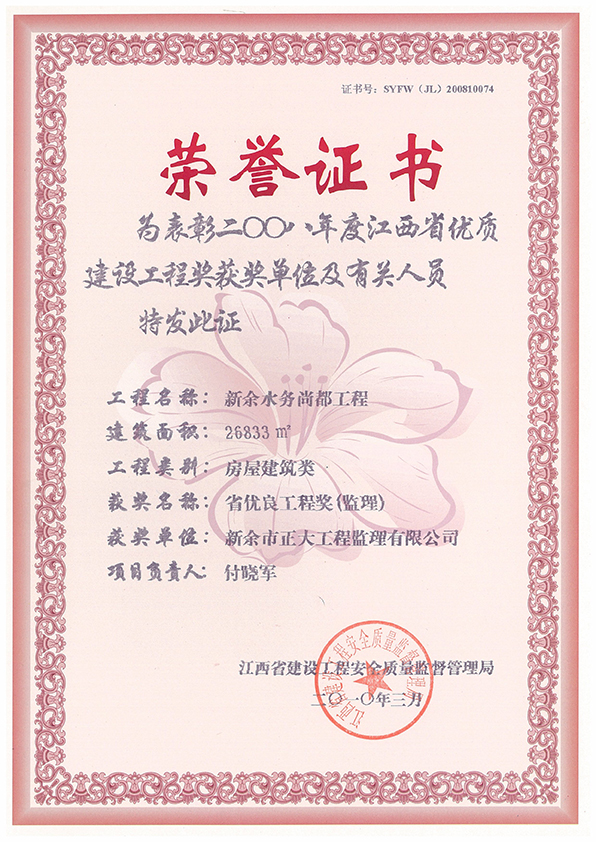新余市正大工程監(jiān)理有限公司依托新余市建筑設(shè)計院,于1995年11月成立,是新余市開展監(jiān)理工作最早的監(jiān)理單位,本公司具有建設(shè)部核發(fā)的房屋建筑工程甲級監(jiān)理資質(zhì)、市政公用工程乙級監(jiān)理資質(zhì)、國家人防辦核發(fā)的人防工程監(jiān)理乙級資質(zhì)。我公司始終堅持“客戶至上、質(zhì)量第一、信守合同”的經(jīng)營理念;追求“為社會創(chuàng)造價值、為業(yè)主創(chuàng)造效益、為自身謀求發(fā)展”的經(jīng)營宗旨;遵循“守法、誠信、公正、科學(xué)、優(yōu)質(zhì)、高效”的工作原則,以雄厚的技術(shù)力量、完善的管理制度、豐富的監(jiān)理經(jīng)驗、良好的企業(yè)信譽(yù)迅速成為我市監(jiān)理行業(yè)的一支新銳力量! 查看更多>>